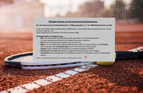 Hallo an alle Punktspielteilnehmende, für die Teilnahme an den Punktspielen ist unbedingt die Registrierung bei